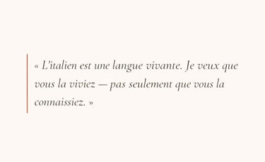 Ni apps, ni grammaire abstraite, ni cours magistraux. Une approche construite autour d'un seul objectif : vous faire parler, naturellement, dès le début.