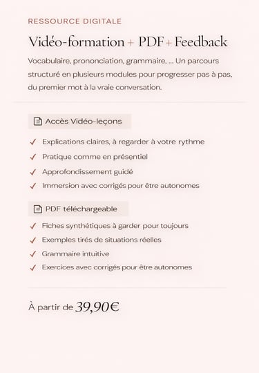 Un PDF simple, direct, immédiatement utile. Idéal pour tester la méthode et commencer à parler aujourd'hui.